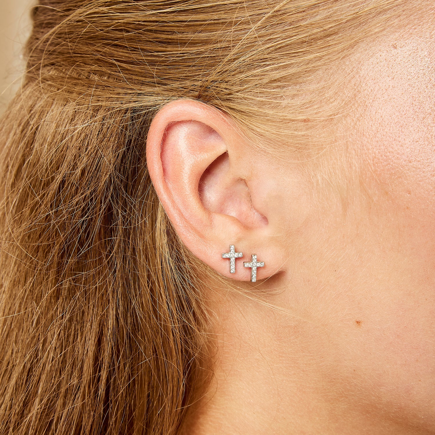 Each stud is adorned with sparkling stones that catch the light beautifully, adding a subtle shimmer. Perfect worn alone for a classic statement or layered with other pieces for a more curated ear stack, these Cross Studs are a timeless addition to your jewellery collection.