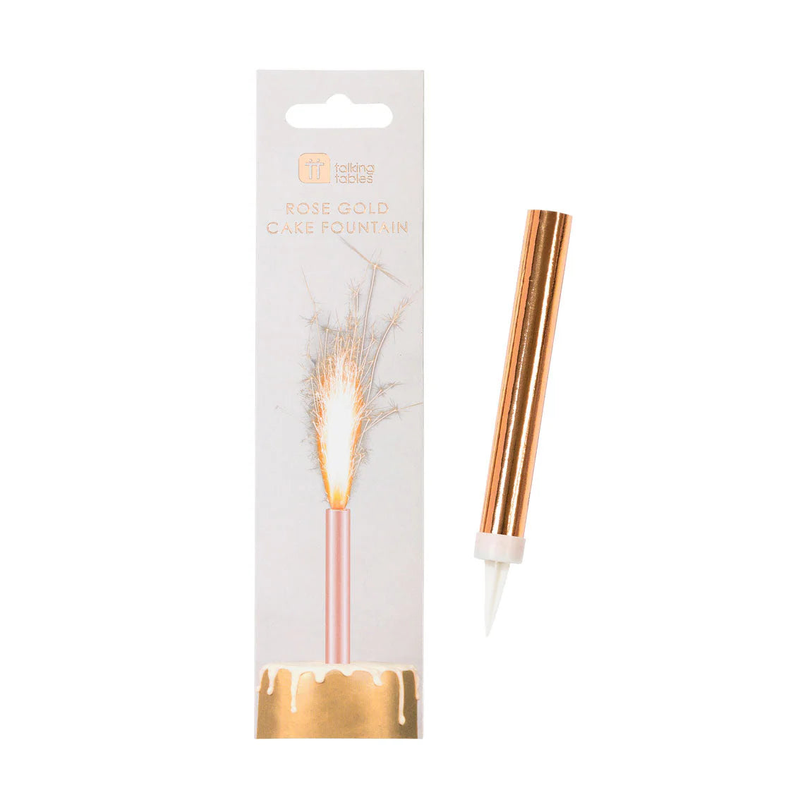 Place in the cake, light and enjoy the show-stopping spectacle! This eye-catching rose gold cake fountain by Talking Tables is perfect for a birthday or Christmas party.
