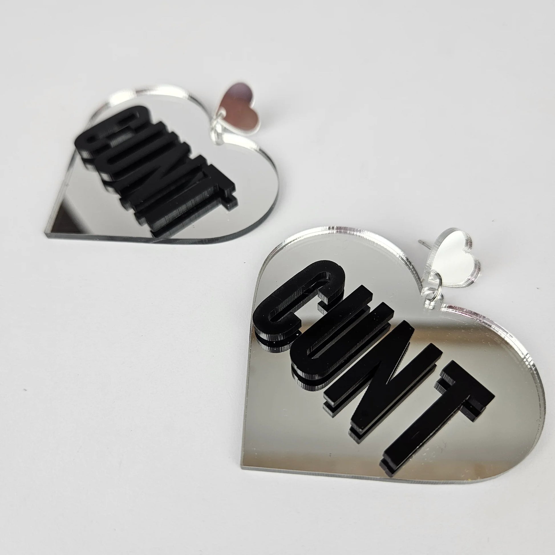 Cunt Giant Heart Earrings - Silver Mirror