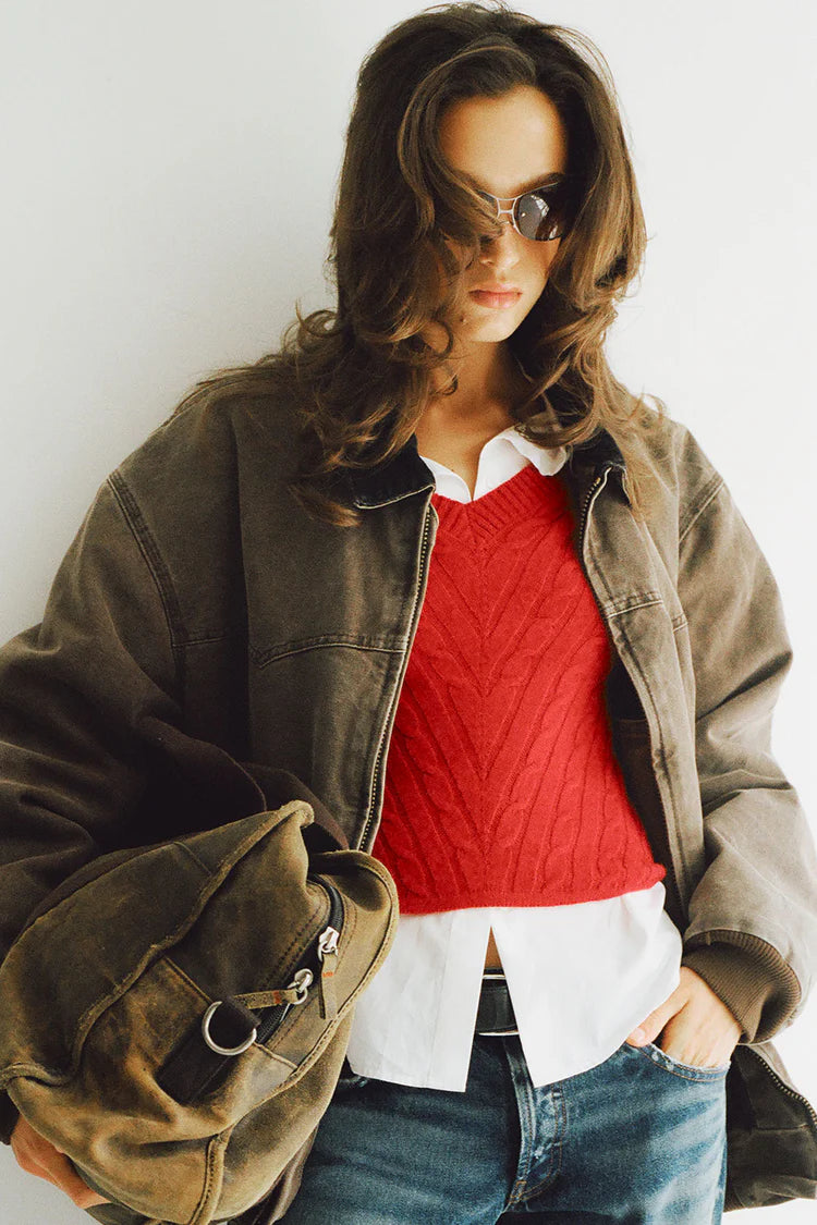 The Kit sweater hugs the body with a tailored shape and a low v-neckline. Pair this cozy staple with a matching knit bottom.